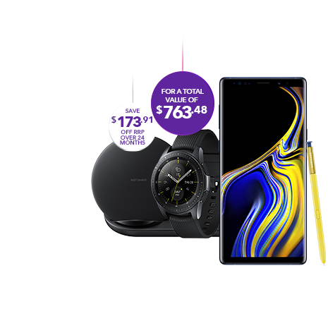 Plus Wireless Duo Charger and $173.91 off the phone when you buy the Note9 interest free over 24 months while on a $52.17 and above open term Pay Monthly plan.