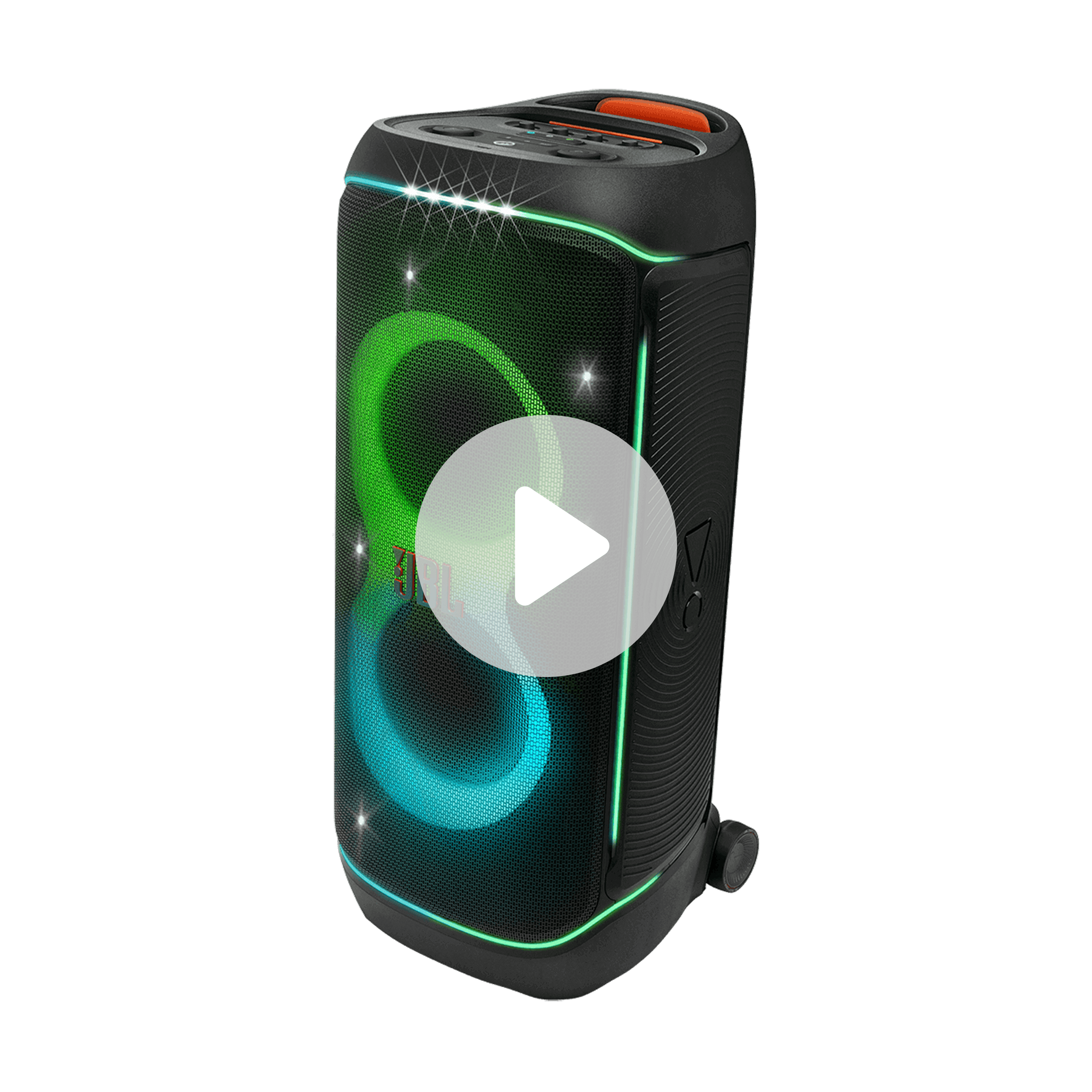 This portable speaker delivers powerful JBL Pro Sound with deep, precise bass and an immersive lightshow featuring starry lights, trails, and strobes. Designed for travel, it includes a comfortable handle, smooth wheels, and a splash-proof build. Swappable batteries (sold separately) provide up to 15 hours of playtime. For bigger sound, stereo pair two 720 speakers or wirelessly link multiple JBL Auracast™-enabled speakers. USB and dual XLR inputs support streaming, karaoke, and connecting microphones or other gear.