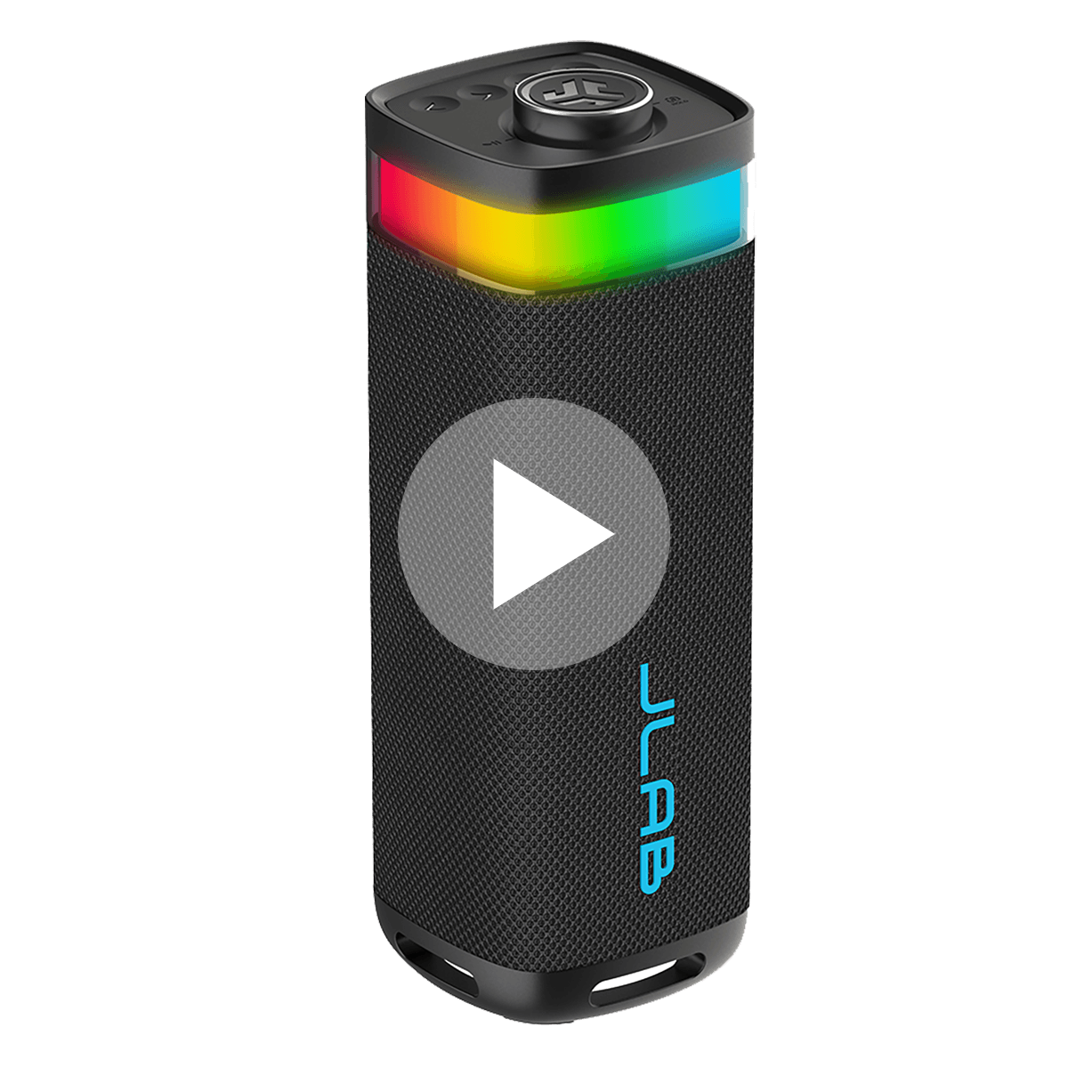 Power up your party anywhere with the JBuds Party Speaker. Enjoy powerful sound on the go with this portable Bluetooth speaker, delivering 30 watts of rich audio and over 12 hours of playtime. Personalise your sound with adjustable EQ settings and set the mood with dynamic RGB lighting effects all in the JLab App. Take control of your sound with the JLab Media Knob and four quick access buttons. Connect up to 100 JLab Party Speakers using LabSync and turn up the volume on your next event. With IP56 water resistance and a handy loop strap, this speaker is ready to bring the party anywhere, anytime.