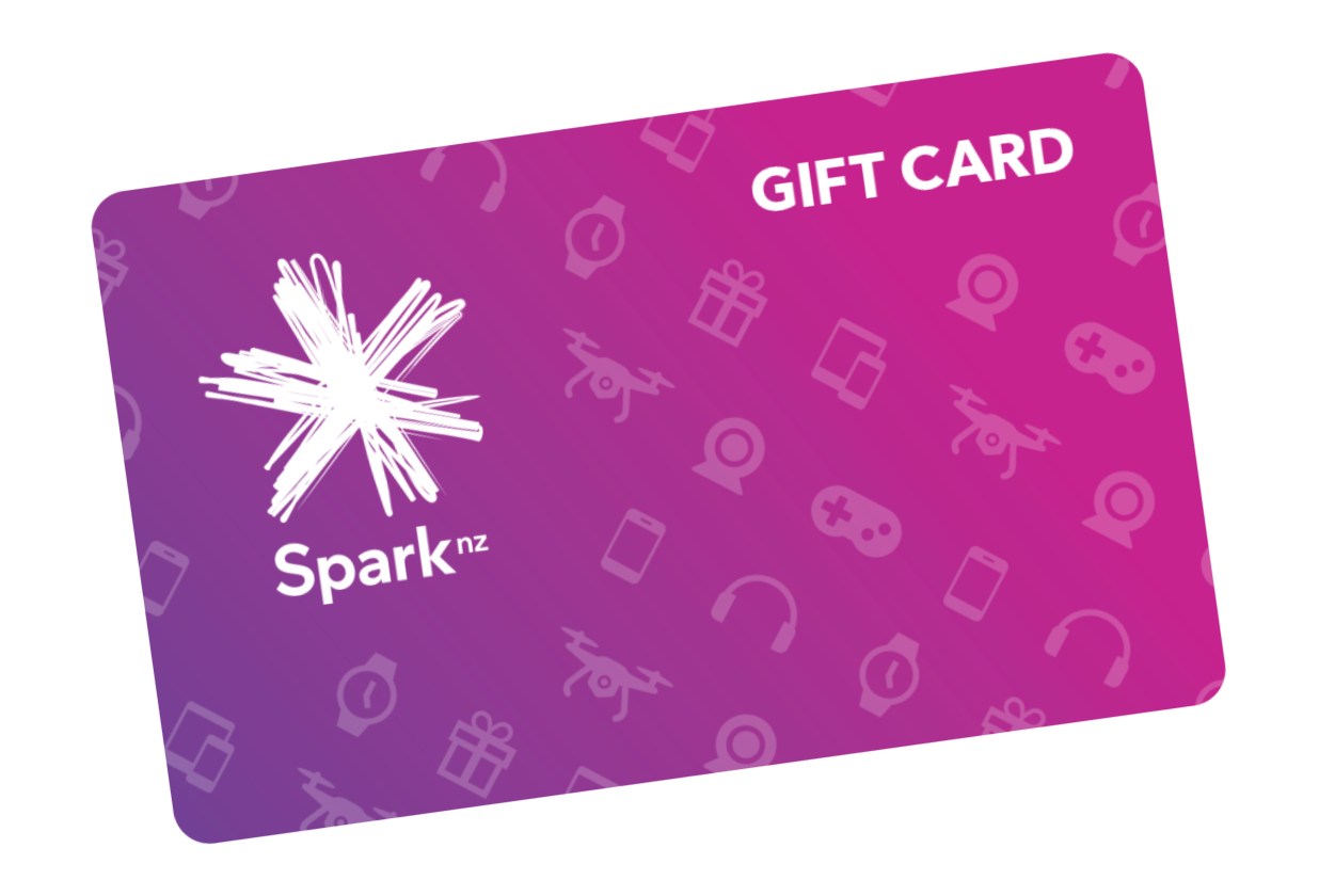 A Spark Gift Card is a card with stored value on it. You can use it to pay for purchases (excluding Spark modems) at any Spark store, on the Spark website or in the Spark app.